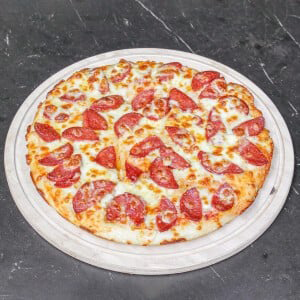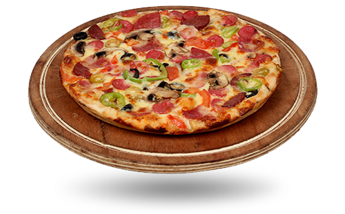 Mozzarella kaşar, salam, sosis, yeşil biber, jambon, domates, mantar
